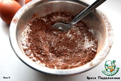 Просеять муку, какао-порошок и крахмал. Духовку разогреть до 200 град.