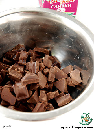Сливки (у меня 20%, жирнее не нашла, но все прекрасно получилось) довести до кипения и залить ими поломанный на кусочки шоколад.