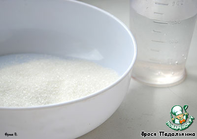 Для пропитки торта приготовить сироп — сахарный песок залить водой, поставить на огонь, варить, пока сахар не раствориться полностью.