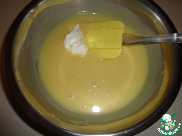 Аккуратно, небольшими порциями ввести взбитые сливки в растопленный шоколад. Важно не торопиться, т. к. мусс может свернуться.