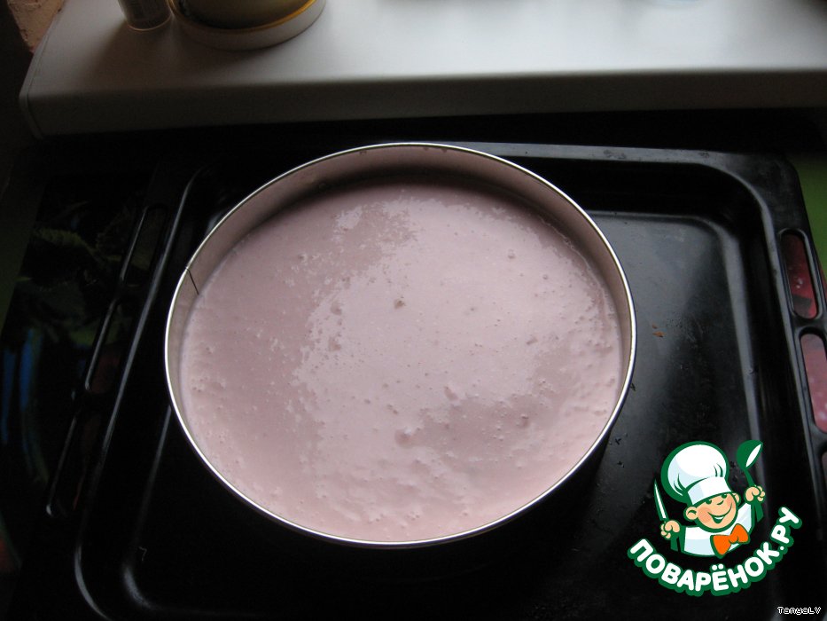 Как только наше вишнeвое желе начнeт густеть, аккуратно выливаем его на наш торт, и ставим снова в холодильник до полного застывания.