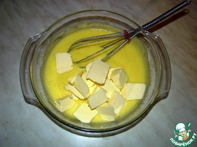 Снимаем с водяной бани, остужаем до 60 градусов и подмешиваем сливочное масло.