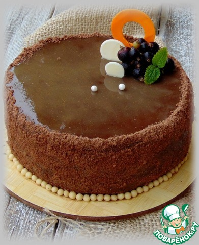 По рецепту, заливается только верх торта, но у меня произошел маленький казус..., пришлось залить весь торт и присыпать крошкой от шоколадного безе.