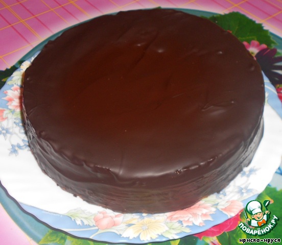 Шоколад растапливаем на водяной бане и поливаем им торт.