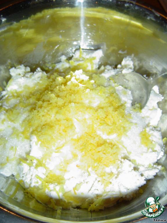 Желатин замачиваем и разводим в 3 ст.л. абрикосового сиропа. Творог смешиваем с лимонным соком, цедрой лимона и сахаром.