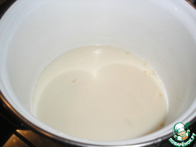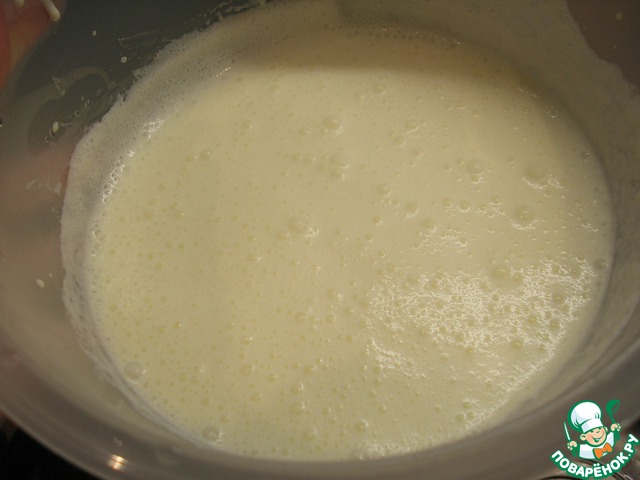 80 мл молока нагреть (не кипятить), добавить набухший желатин и перемешать до растворения желатина.