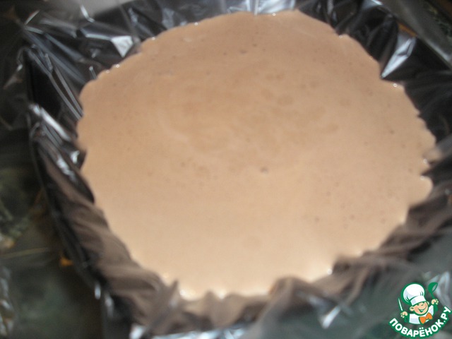 Выливаем тесто в форму. Если форма металлическая, застелите форму пекарской бумагой.