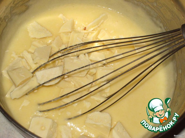 В горячую массу добавить белый шоколад и размешивать, пока шоколад не растает и масса не станет однородной. Полностью остудить.