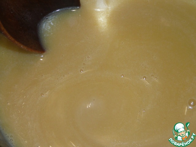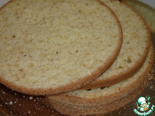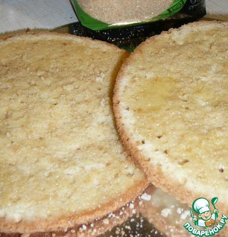 Часть еще теплого соуса мы используем для пропитки коржей (не более половины порции соуса на все). Если любите очень "мокрый" бисквит, доведите его до нужной кондиции молоком или водой.