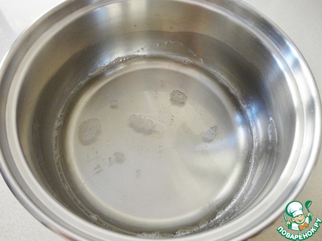 Для сиропа 100 г воды и 100 г сахара кладем в кастрюльку и варим 1 минуту после закипания. Остужаем.