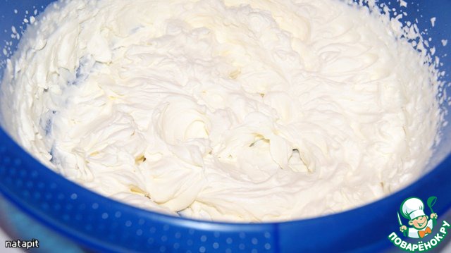 Сливки взбить с пудрой до мягких и устойчивых пиков.
