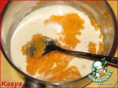 3 желтка растираем с сахаром, мукой и небольшим количеством сливок (сливки комнатной температуры)