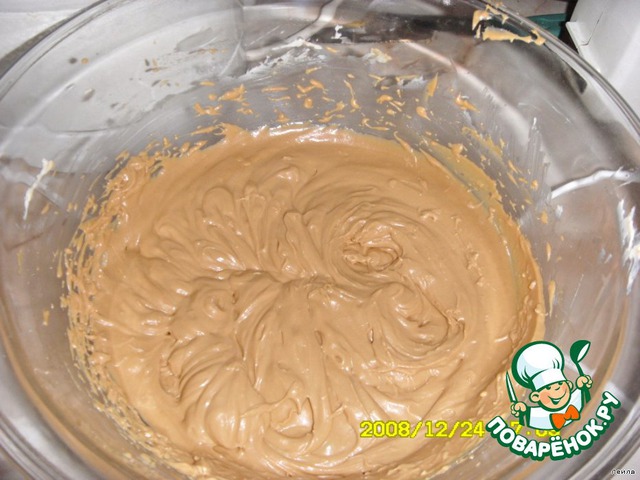 В конце вмешать масло с кипятком,и аккуратно перемешать ложкой.
