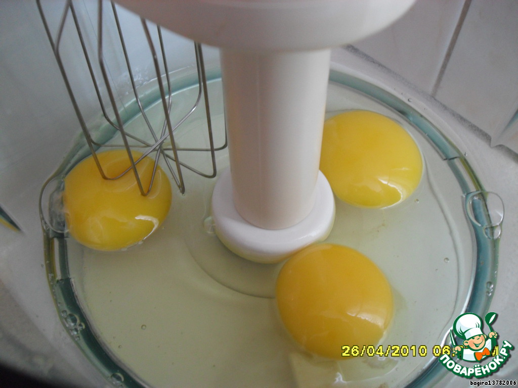 Сначала взбиваем одни яйца в течение 7-8 минут. Яйца должны быть комнатной температуры.