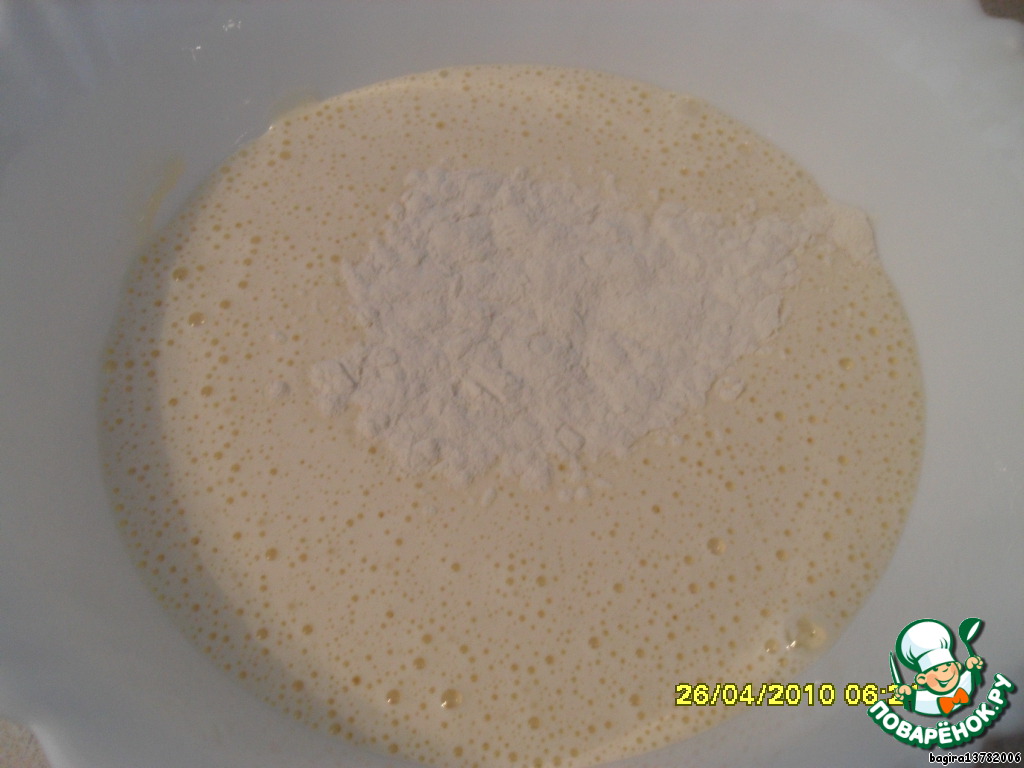 К яично-сахарной массе по частям добавляем мучную смесь и все аккуратно перемешиваем.