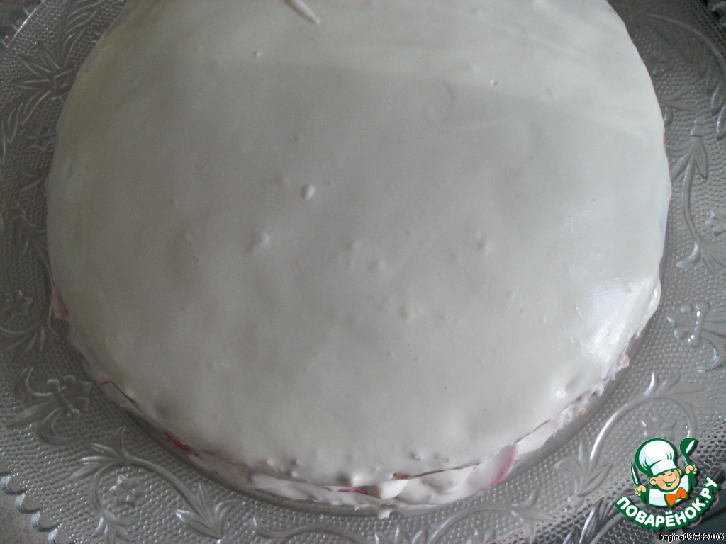 Я дополнительно сделала слой крема между клубникой и вторым бисквитом, чтобы корж лучше "приклеился".