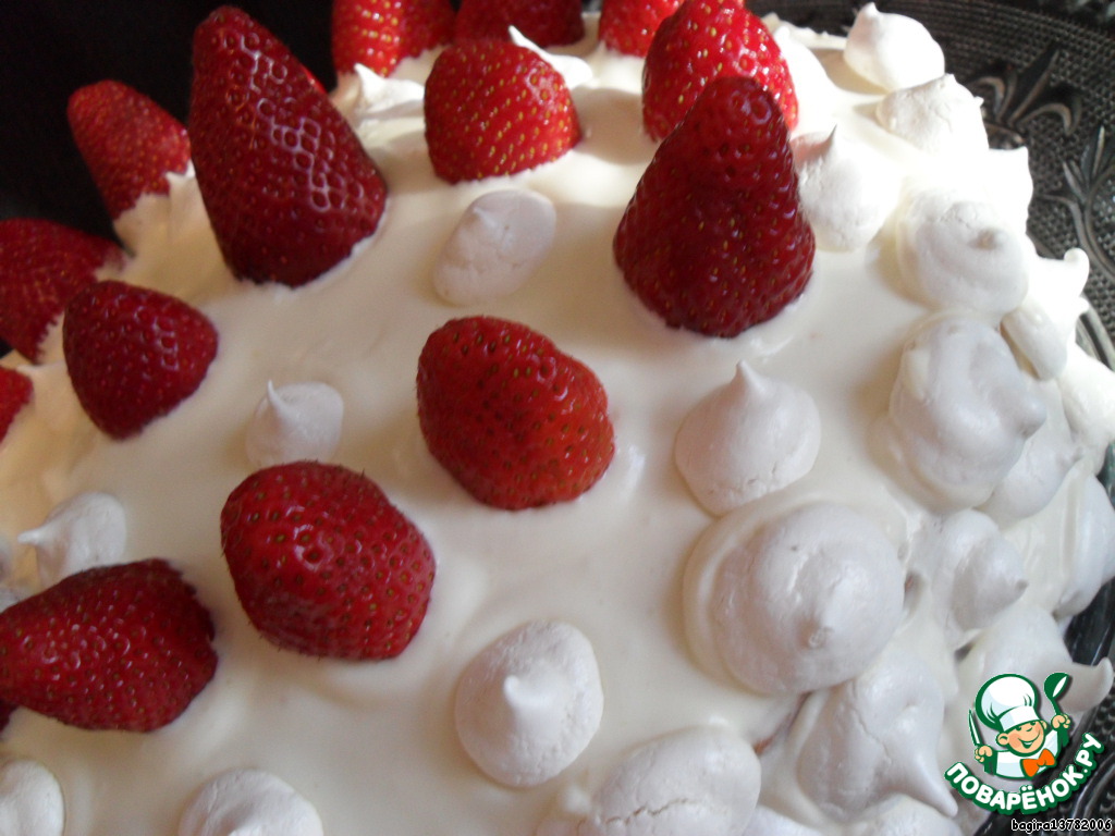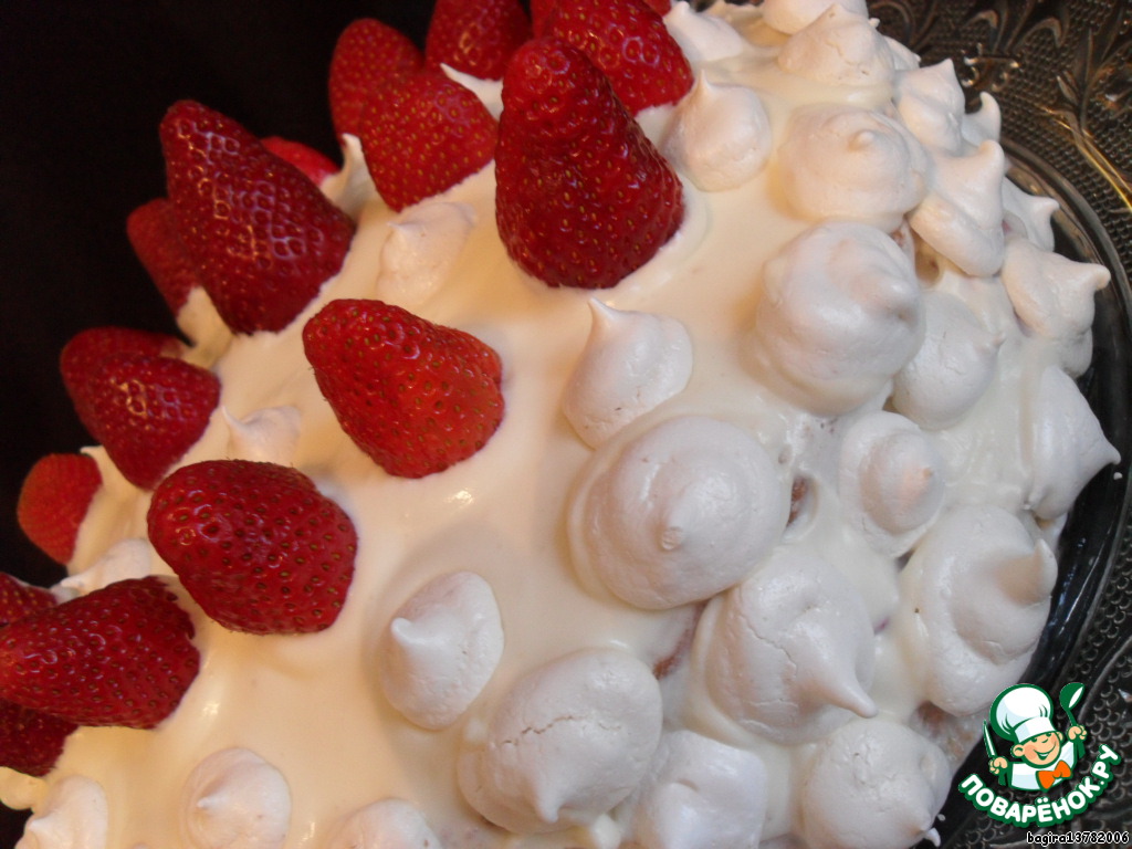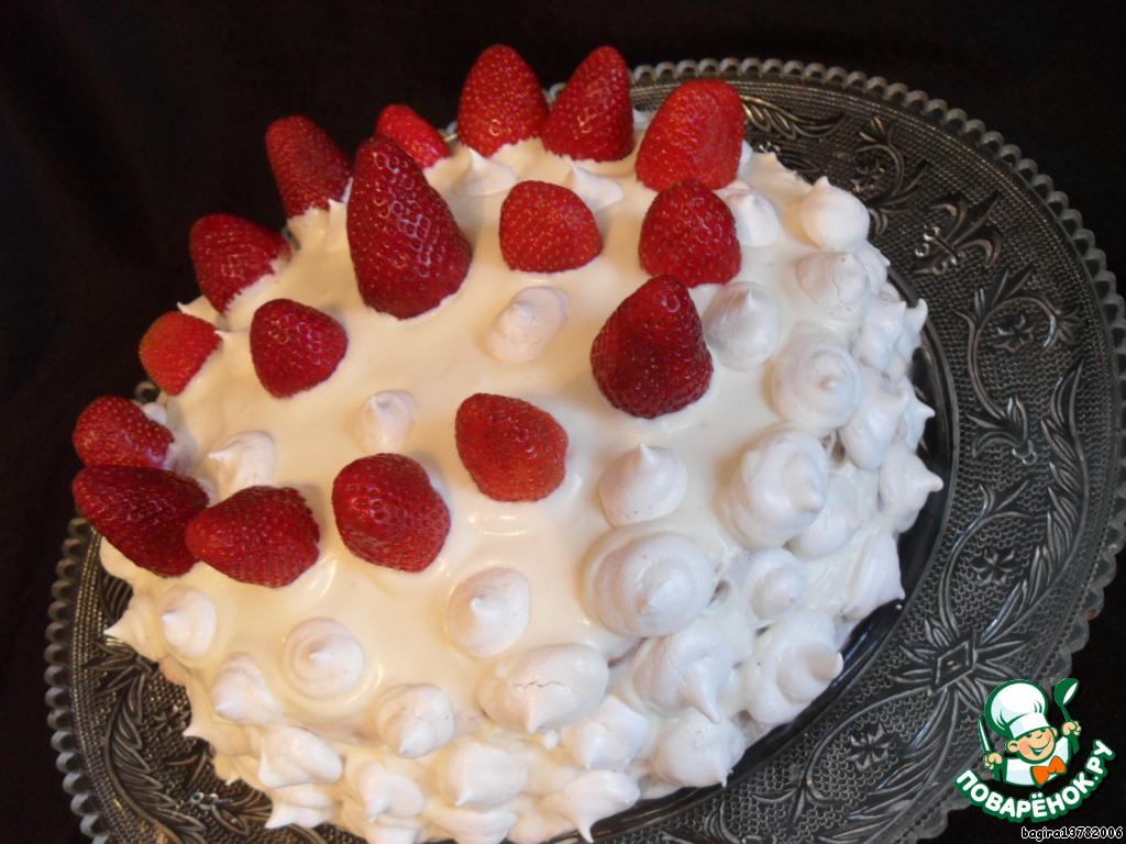 Боковины и верх торта украшаем меренгой. Целые ягоды укладываем на верх торта в виде колючек.
