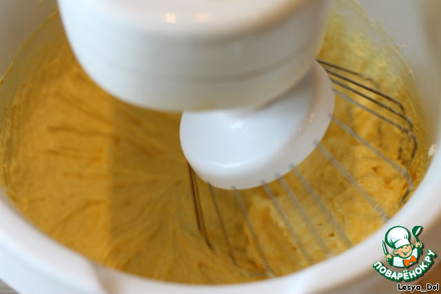 Поочередно, в три захода, добавить в масляную смесь муку и молоко, хорошо взбивая на маленькой скорости. Последней нужно добавить муку.