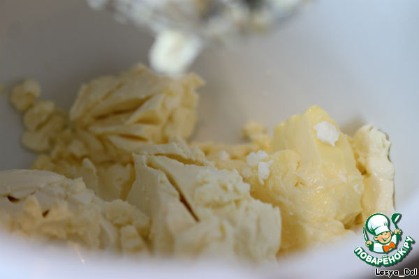Для приготовления крема очень важно, чтоб маскарпоне и масло были одинаковой, комнатной температуры, иначе при взбивании он может расслаиваться. Поэтому достаньте масло и сыр из холодильника минимум за 3-4 часа до взбивания. Хорошо миксером взбейте масло и сыр, добавьте пудру и ваниль. Взбивайте до пышности минуты 4-5.