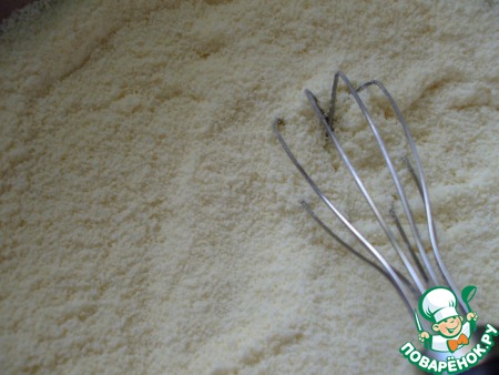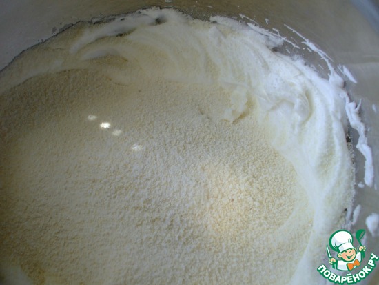 Гибкой лопаткой осторожно ввести в белки сухую смесь.