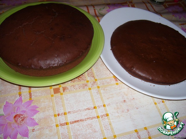 разделить тесто на две части(2/3+1/3),выпечь два коржа.меньший корж разрезать на два(либо из 1/3 теста выпекать 2 коржа,вместо одного).выпекать при Т 150-160,большой корж примерно 50 мин.,маленький 25 - 30 мин.форма у меня D = 23 см.