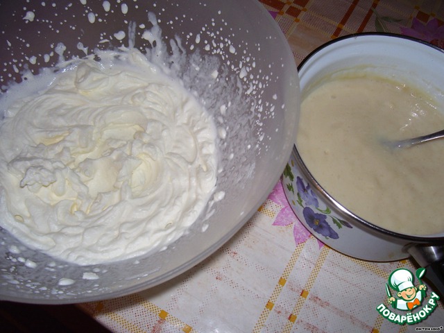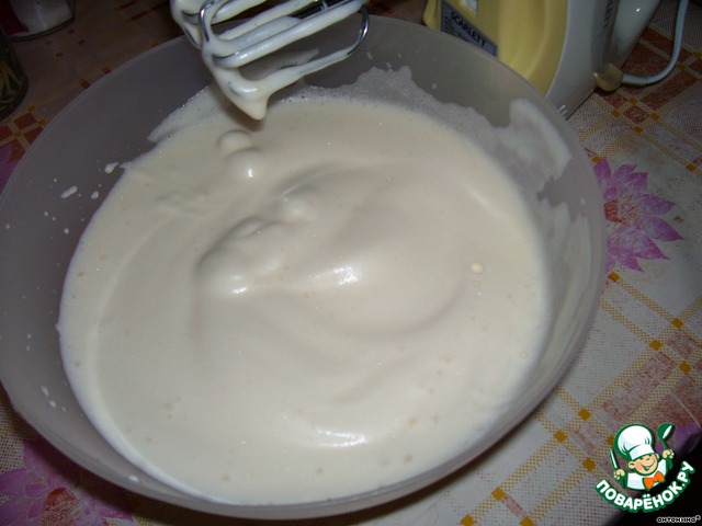 яйца взбить до увеличения массы в несколько раз.
