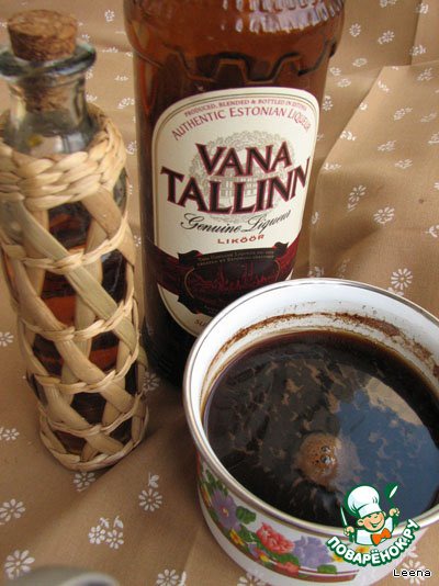 Приготовим пропиточку. Для этого заварим крепкий очень сладкий кофе и добавим в него по столовой ложечке коньячку и ароматного ликерчика.