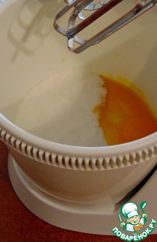 Ввести в желтки, продолжая взбивать до однородной массы.