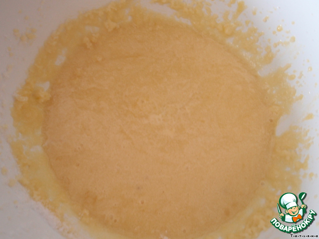 Испечь в духовке на среднем огне 2 коржа, остудить и разрезать каждый по горизонтали.