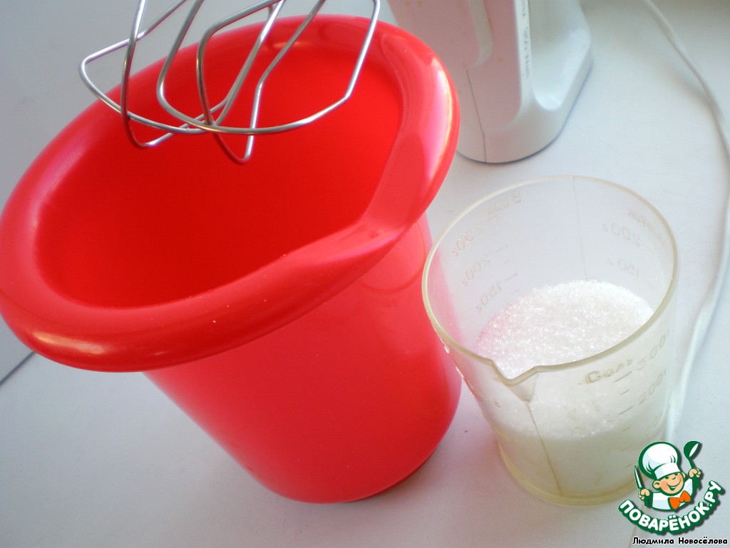 Взбиваем яйца минуты три, постепенно добавляя сахар, продолжаем взбивать минут 5-7, вливаем тонкой струйкой растительное масло, не прекращая взбивать.