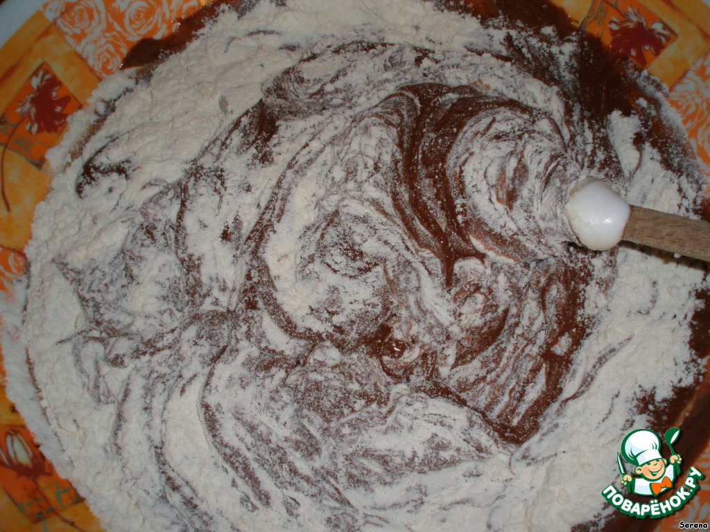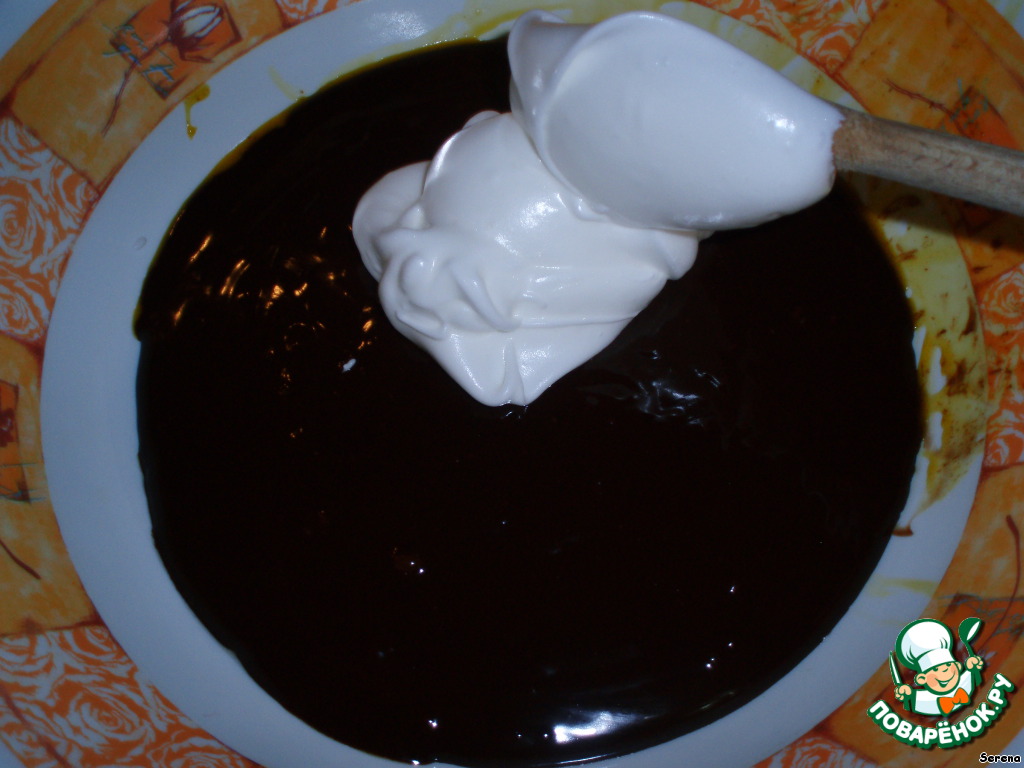 Вмешать нежно 1/3 белков в шоколадную смесь.