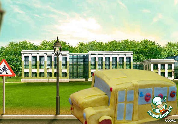 | Побольше нашим деткам школьных автобусов веселых и красивых! Посвящаю этот тортик гениальному педагогу, моей подруге Шадриной Наталье Сергеевне, которая однажды мне сказала: "Когда появится ради кого готовить - всему научишься". Желаю ей и всем Поварятам-педагогам здоровья и удачи! С грядущим международным Днем учителя! На конкурс "Школьная пора" |