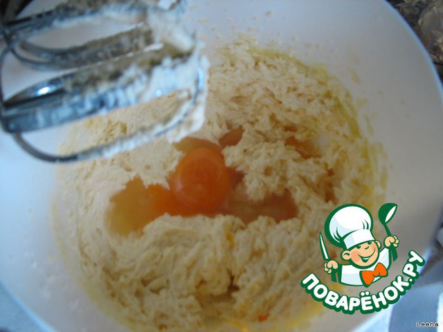 Масло взбиваем с сахаром и постепенно по одному вводим яйца до густой пены.