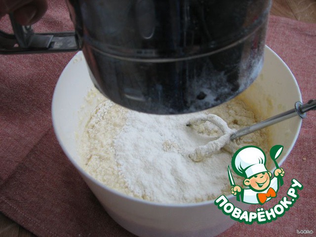Прежде всего готовим бисквиты - основу нашего торта. Я пекла их в противне - два больших коржа. Соответственно процедуру замеса бисквита делала дважды. Не нужно сразу готовить все тесто - оно быстро оседает. Разделим наши продукты пополам и приготовим два коржа:
