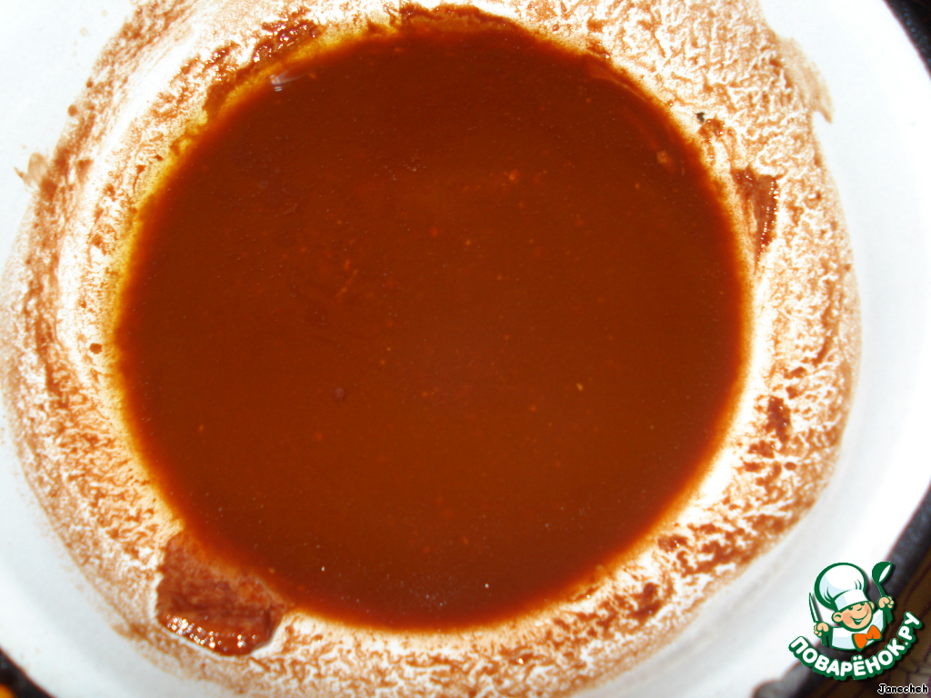 Приготовим тесто для бисквита. Растопим на водяной бане 50г масла с шоколадом. Оставим остужаться.