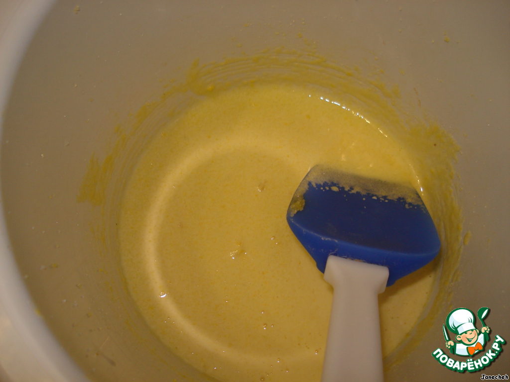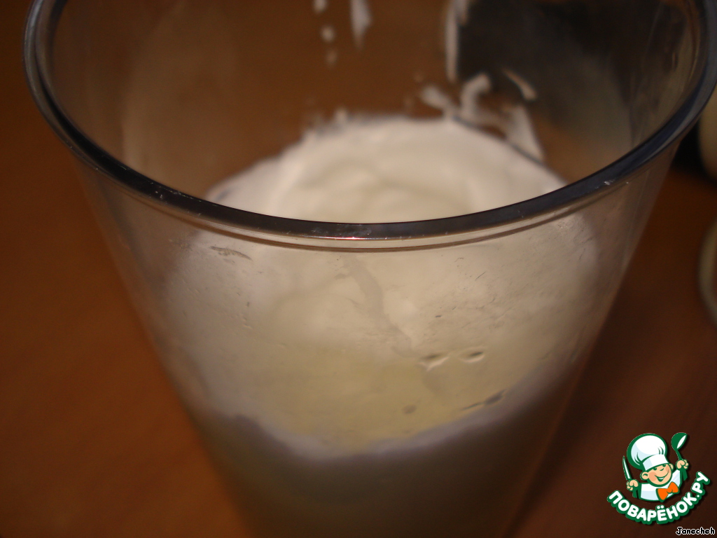 Белки взбить в крепкую пену. Аккуратно ввести в тесто.