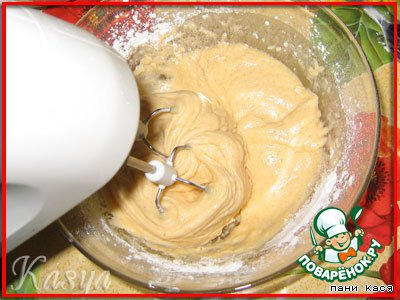 Вмешиваем муку в желтки, мешаем на низкой скорости, просто до однородности