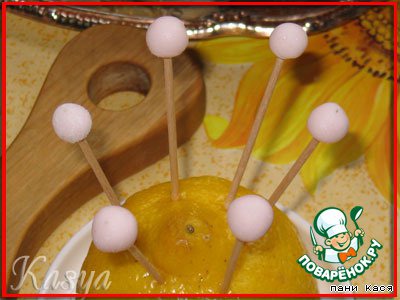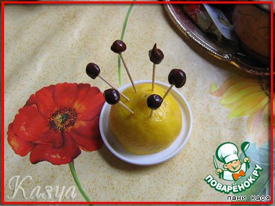 Делаем шарики - центр цветочков. Втыкала в лимон.