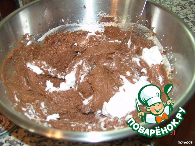 Постепенно, осторожно перемешивая ввести белки в шоколадную смесь.