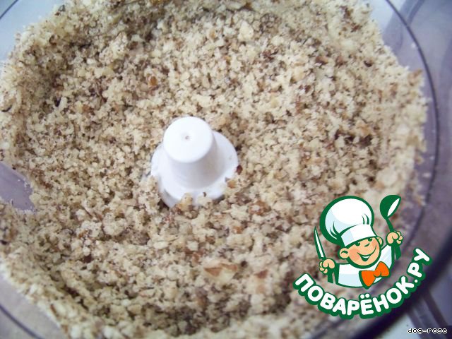 В первую очередь измельчаем грецкие орехи