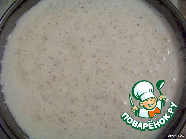 Добавляем в яично-сахарную смесь муку и 3 столовые ложки молотого грецкого ореха, быстро перемешиваем на низкой скорости до получения однородной массы.