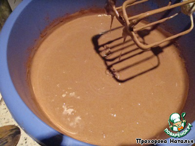 Добавляем просеянную муку, разрыхлитель и какао. Перемешиваем до однородности.