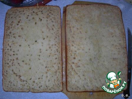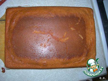 Тем временем бисквит готов. У меня он сверху плохо пропекся, поэтому я просто перевернула его и допекла еще минут 10 =). Получилось вот что.