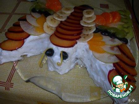 Вот и все. Бабочка застыла, мы украшаем ее фруктами и покрываем слоем желе.