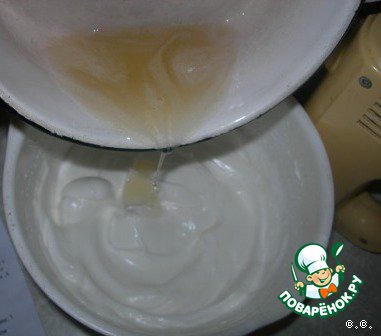 Взбиваем белки с 3 ст.л. сахара до твердых пиков.