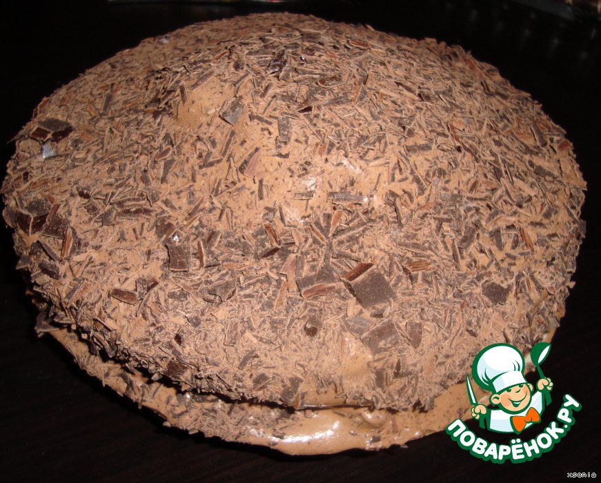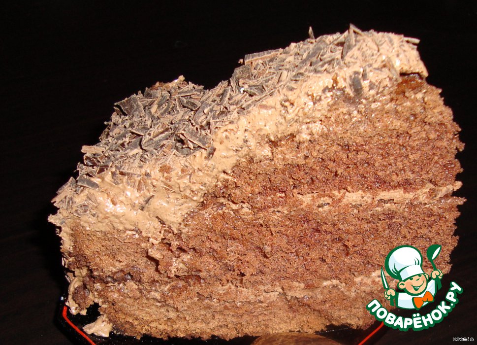 | Тортик для хорошей, отзывчивой девушки Асель (O_as_is). И для всех любителей шоколада. Так как торт очень шоколадный, от бисквита до крема, покрыт шоколадным муссом и обсыпан шоколадной стружкой. Сплошное шоколадное удовольствие. |