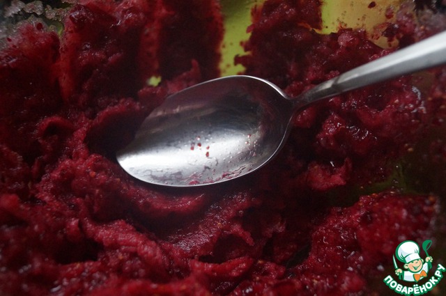 Из клюквы готовим сорбе. Опять же, из клюквы - это не принципиально. Можно взять любые фрукты или ягоды. Но клюква даёт шикарный цвет и приятную кислинку. Кроме того, этот шаг можно вообще пропустить, тогда середина торта будет просто белой.
