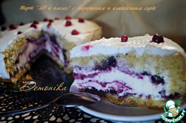 Торт "Лёд и пламя" с мороженым и клюквенным сорбе