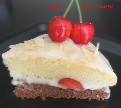 Можете украсить, как вам захочется. Я сверху посыпала тонко нарезанным миндалем и черешней.