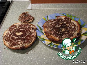 В форму выкладывать ложкой попеременно из обеих емкостей. пока все тесто не закончится.